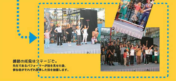 サーカスで見られるアクロバティックな技をプロのパフォーマーから教わり、最終的にショー仕立てで