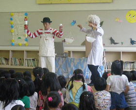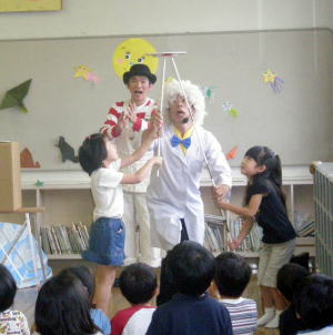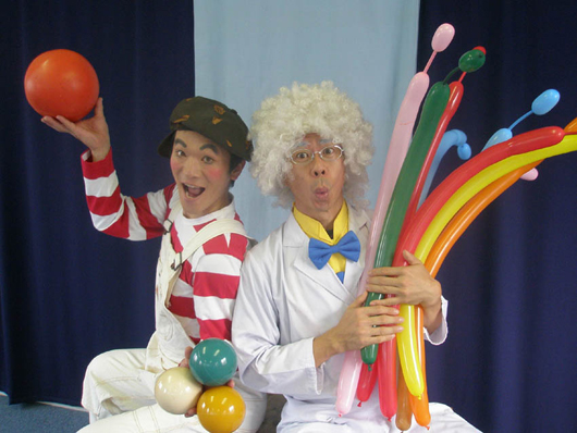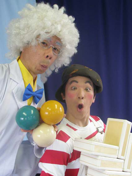 「同じくらいの大きさのコレとコレ、どっちが重い?」 毎日の生活にイッパイあふれている不思議なこと。 それは、み〜んな理科室で習うことなんだ。 いおり博士の理科室で、博士とこうじくんが展開する不思議で納得、そして楽しいジャグリングショー。 楽しみながら、勉強しちゃう、エデュケーション・パフォーマンスをお届けします。 |